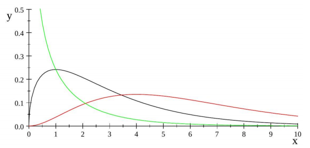 The shape of the Chi-squared Distribution is highly dependent on the degree of freedom , here is a graph of different pdfs of :