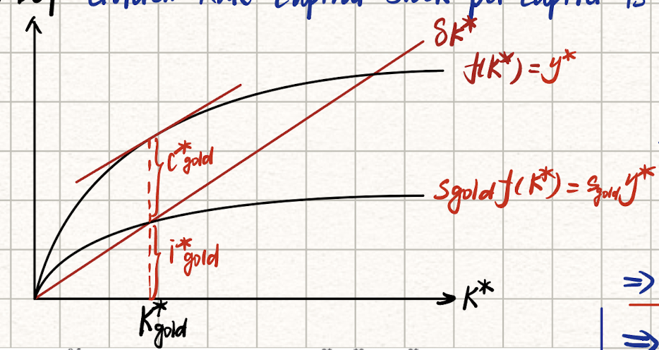 The Golden Rule capital stock per capita is the Steady State vallue of capital stock that maximizes the consumption.