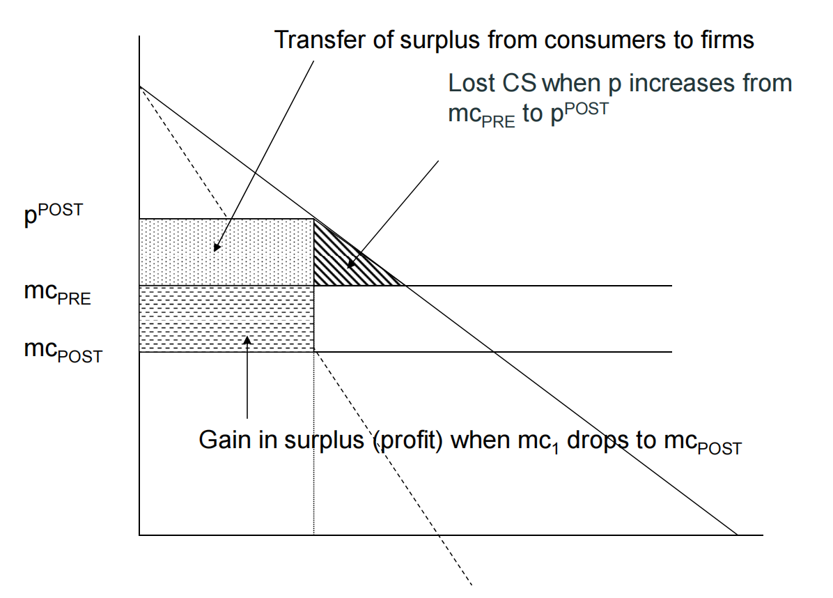 You could simply understand in the way that before Merger happens, it is perfect competition, but after that, the market becomes the monopoly.
