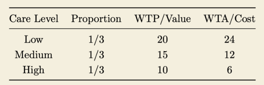 We may consider it as a three level cases of The Market for Lemons ( two levels). In the table here, we have three types of buyers: those who want to buy Low, Medium and High type of insurance. Each has the same proportion.