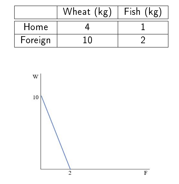 The foreign would have a different PPF graph. (mainly different slope of PPF), the Autarky Equilibrium would also differs.