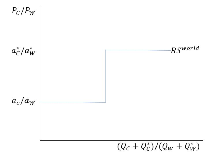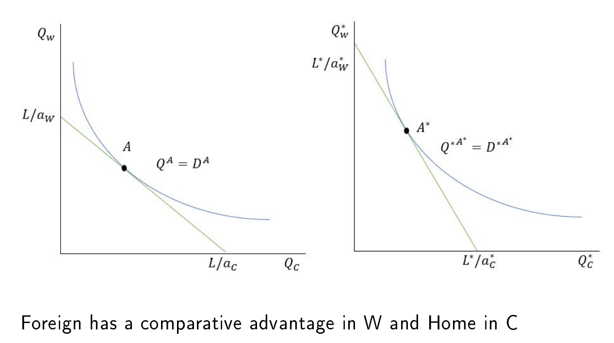 So, when in the Autarky Equilibrium, that means there are no other foreign countries. The equilibrium would meet at the intercept point between and